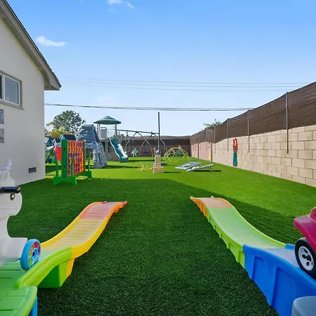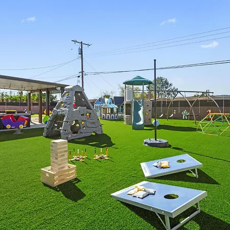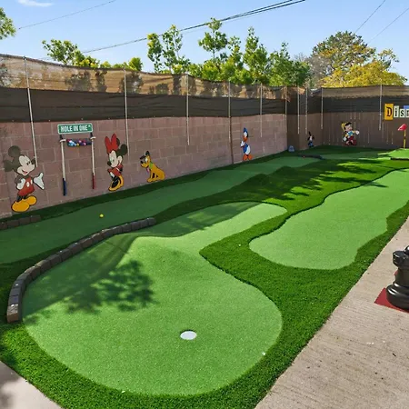 The 2-bedroom The Disneyland Dream: Arcade, Theater, Play, Golf+ Garden Grove villa is located within 25 minutes' walk of Pioneer Park and boasts outdoor dining areas provided on a terrace for a pleasant stay.